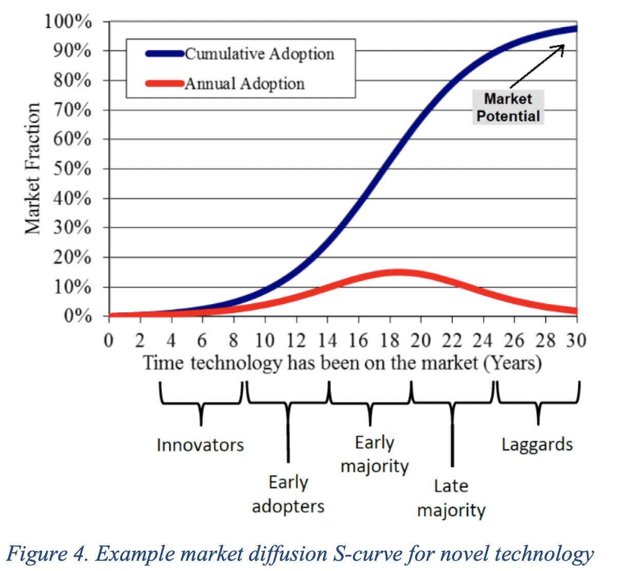 Figure 4. Example market diffusion S-curve for novel technology